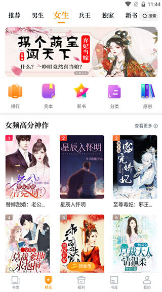 4、书库分类十分精细,你可以先选择男生或女生频道,接着挑选具体的小说类型,这样就能获取到专属的推荐内容了。