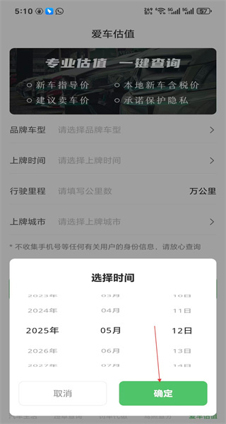 4、确认时间选择界面上的日期信息,再次点击确定按钮,即可完成上牌时间的选择操作。