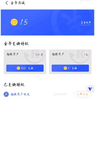 进入我的,然后点击上方的“金币兑换特权”