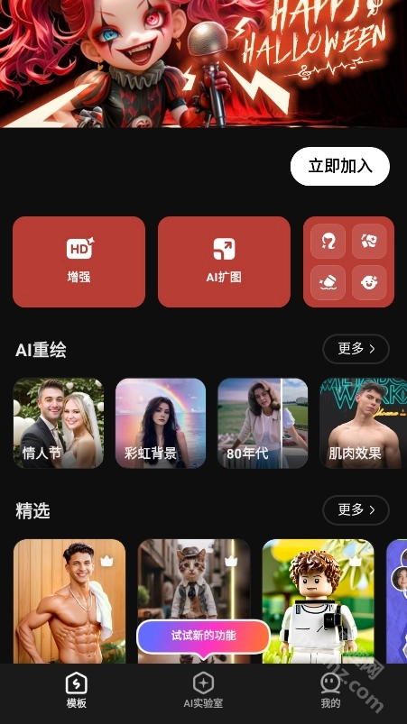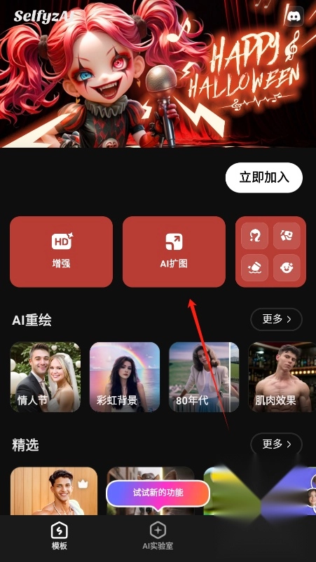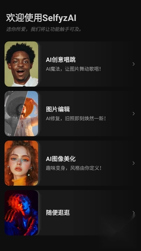 首先在魔趣网下载并安装SelfyzAI,进入首页后,能看到AI创意唱跳、图片编辑、AI图像美化等功能。