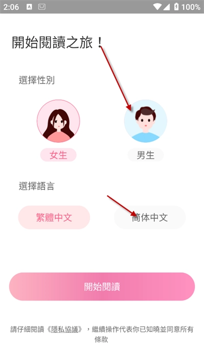 3. 接着选择个人的性别,这样软件就能为用户推送更具个性化的内容。