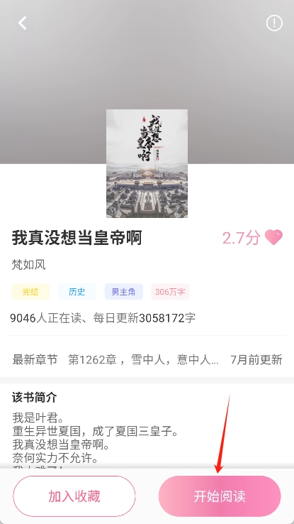 4. 浏览页面后点击选择你感兴趣的小说,再点击开始阅读,就能畅享免费阅读的体验了。