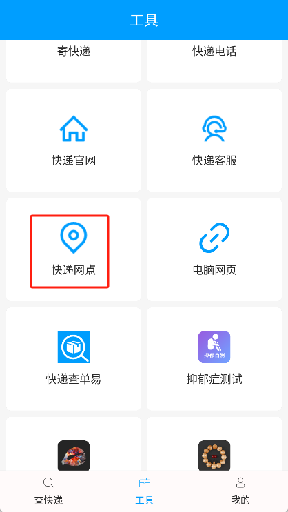 4、进入工具页面后,用户还能使用附近网点查询功能,借助地图直观查看周边快递网点的相关信息。