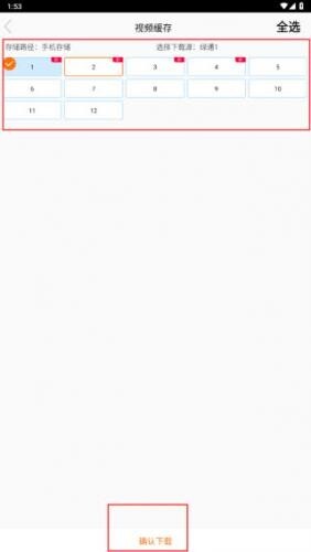 4、你可以选择要缓存的集数,接着点击下方的“确认”按钮。