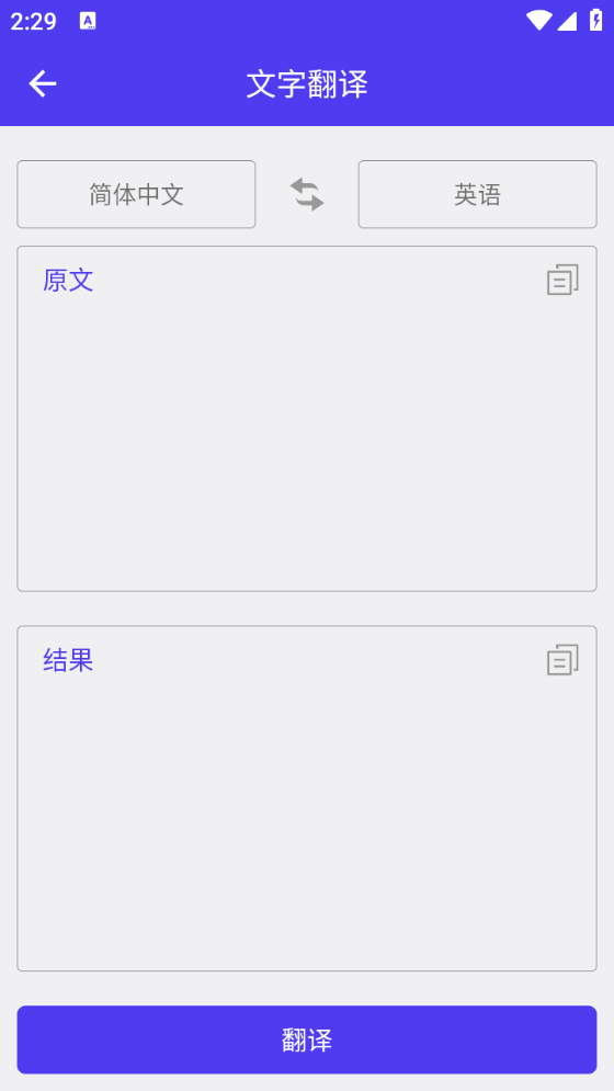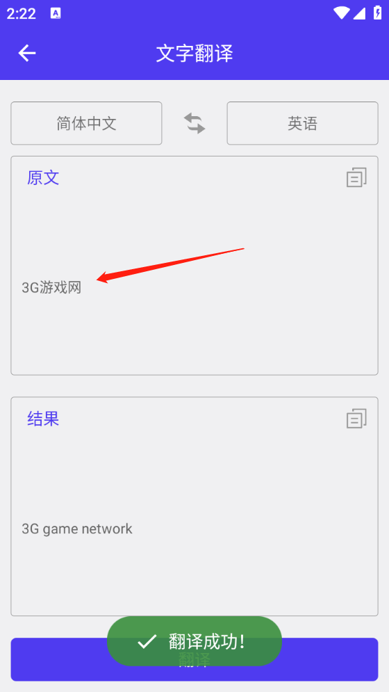 4、在输入框内填入需要翻译的内容,点击“翻译”按钮后,翻译结果便会显示出来。