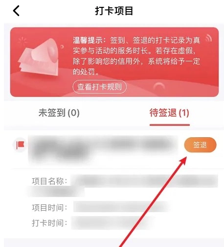 在打卡项目中点击待签退。