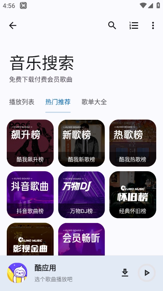 2、有热门推荐和歌单大全,也可以通过关键词进行查找喜欢的音乐。