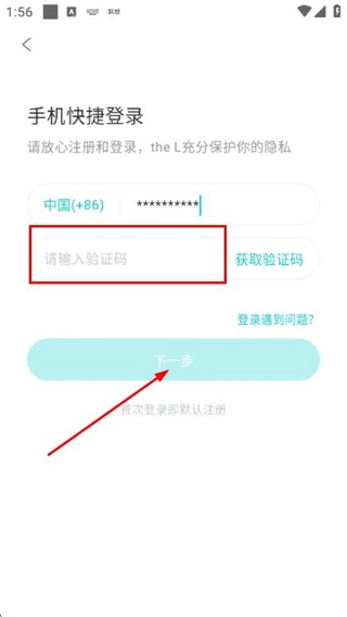 3、在验证码输入框中填入收到的验证码,点击“下一步”按钮,即可完成账号登录流程。