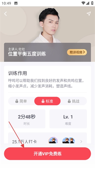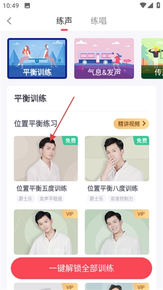 2、进入练声页面后,点击想要进行的训练内容,即可进入该训练的详情页面。