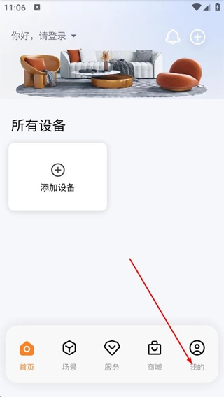 在该设备管理应用的首页,点击底部的“我的”选项,即可进入个人页面。