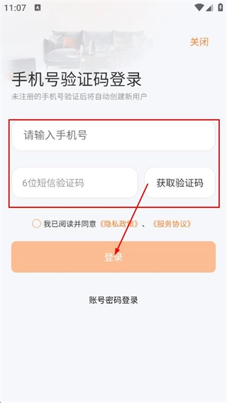 4、在手机号验证码登录界面,输入手机号及对应的验证码后,点击登录按钮即可完成账号登录操作。