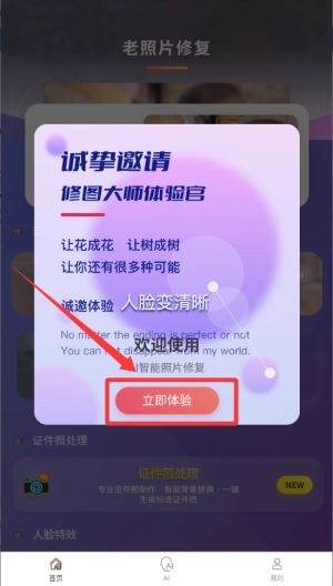 1、探索案例与工具:启动应用后,浏览各类优质案例以直观了解不同功能的修复成效,从而初步明确后续的编辑方向。