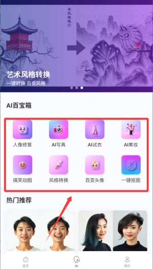 2、进行修复与风格调整:上传待处理的照片,依据需求运用“人脸变清晰”功能改善画质,或者挑选“照片风格转换”功能来改变艺术风格。