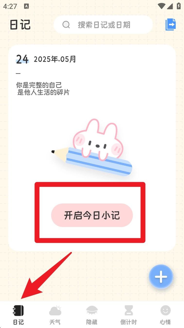 打开App后,点击底部的「日记」图标,接着选择「开启今日小记」,就能进入当天的日记编辑页面,准备开始记录内容啦。