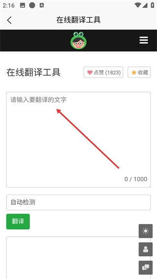 2、进入在线翻译工具页面后,点击输入框以激活文本录入区域,为填写待翻译内容做好准备。