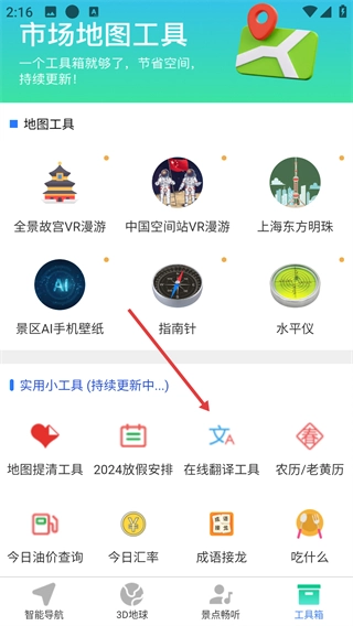 1、在“市场地图工具”的工具箱页面,点击【在线翻译工具】选项,即可进入翻译功能的操作界面。
