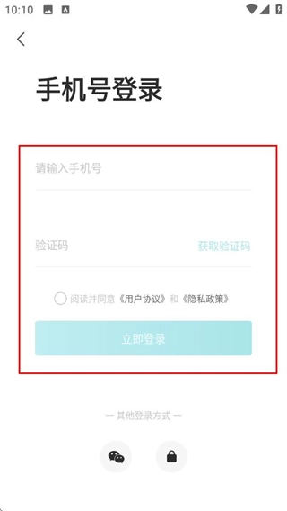 在个人中心页面,点击“立即登录”选项,即可进入手机号登录页面。