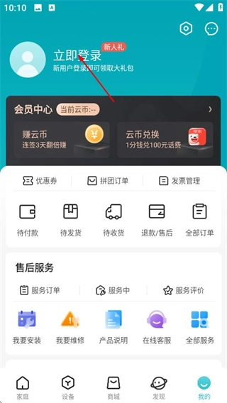 1、在云米首页,点击底部的“我的”选项,进入个人中心页面。