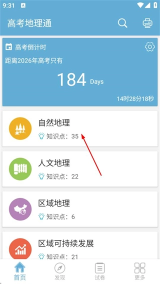 在高考地理通的首页,点击自然地理选项,进入自然地理知识点列表页。