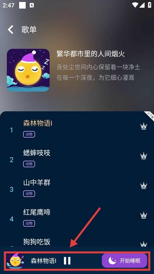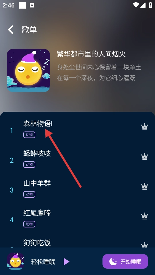 4、即可播放“森林物语”助眠音乐,开启助眠模式。