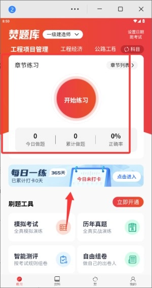 2、进入题库后,建议先完成一套历年真题或模拟试卷,以此熟悉考试的题型与难度情况,系统会自动生成对应的能力评估报告。
