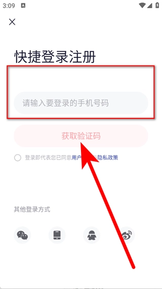 3、输入手机号码,勾选用户协议后,点击获取验证码。
