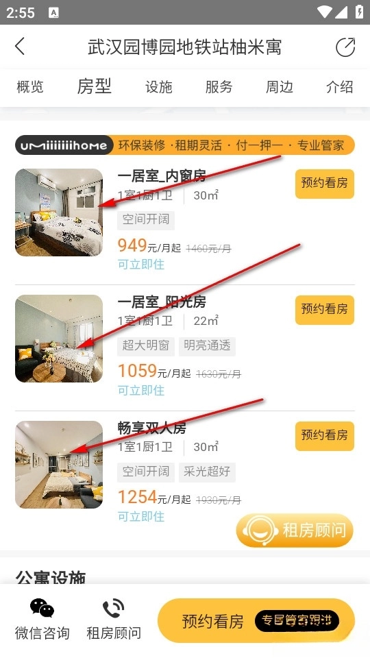 找到我们寻找的公寓后我们寻找一个房型查看详情。