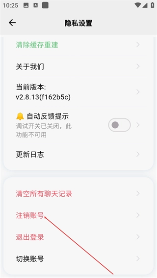 3、进入隐私设置页面后,找到并点击【注销账号】选项,以此启动账号注销的确认流程。