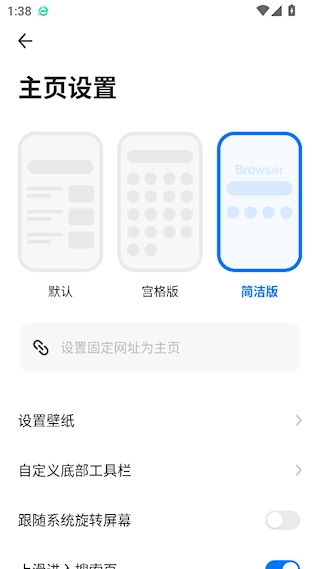 3、进入主页设置中,选择简洁版