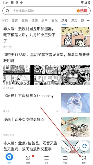 1、打开360浏览器资讯页面,点击底部导航栏中的我的选项进入对应页面。