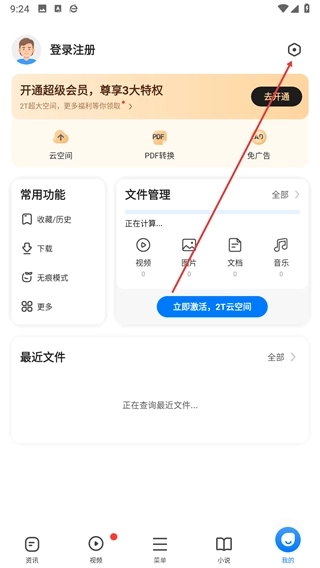 2、在我的页面右上角找到设置图标,点击该图标进入应用的设置界面。