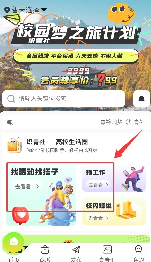 炽青社是面向大学生的校园生态服务平台,整合活动发布、兴趣搭子匹配、兼职信息及校园商城等功能。而且还可以帮助学生便捷参与校园生活、拓展社交并获取实用资源。现可免费体验。