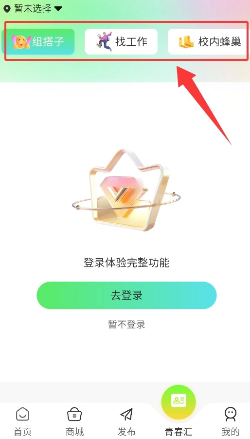 4、青春汇界面同样提供找搭子、找工作、校内蜂巢等功能(与首页部分功能重复)。