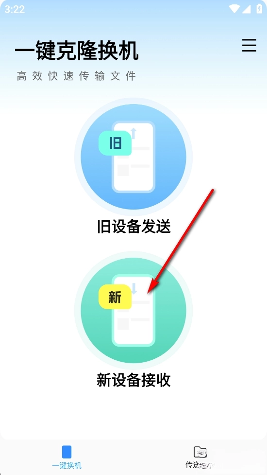 新手机点击【新设备接收】