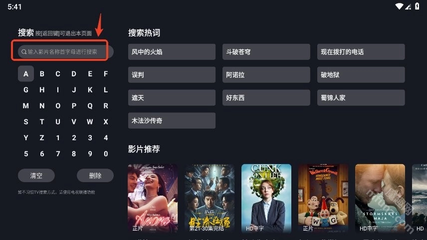 2、点击“搜索”按首字母查找喜欢的影视剧。