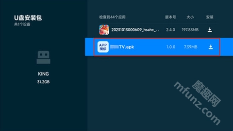 在安装前需通过本页面将安装包并复制到U盘上,这里提供的是小米电视安装方法。