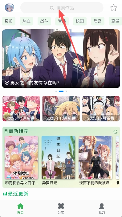 4、用“分类筛选”按地区或题材找番更精准,日漫、韩漫、热血恋爱全都有,不怕剧荒