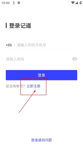 1、在【登录记道】界面,先填写【请输入你的手机号】与【请输入密码】,若尚未有账号,点击【立即注册】即可进入注册流程。