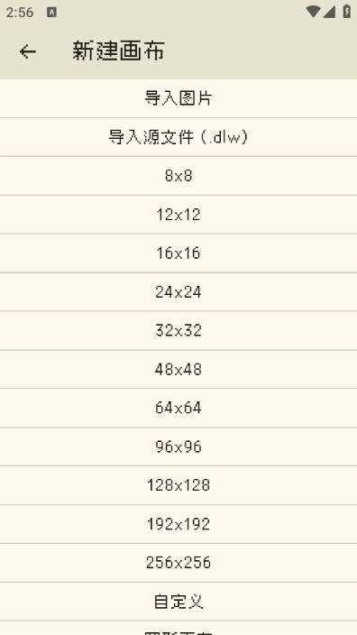 2、在弹出选项中选择“创建一个新的图片”,并根据需求选择合适的像素画布大小(如32×32、64×64等)。