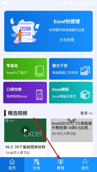 1、在应用首页,点击对应标识的选项,可进入教程板块,查看各类【Excel】相关的学习内容与课程资源。
