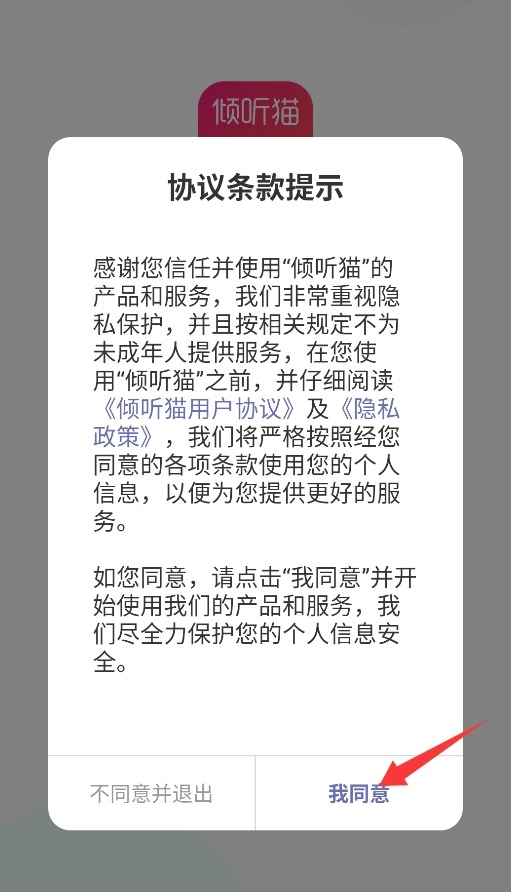 1、首次启动会显示协议条款弹窗,需点击同意后方可进入应用。