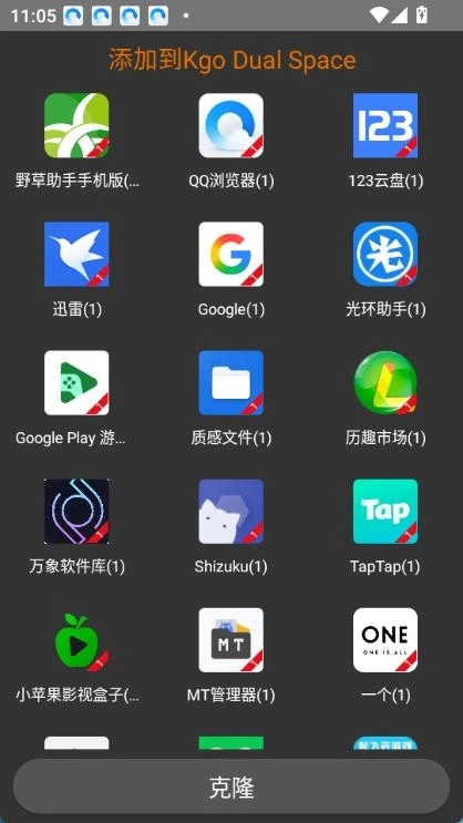 2、点击首页的“+”号并选择需要克隆的应用或游戏。