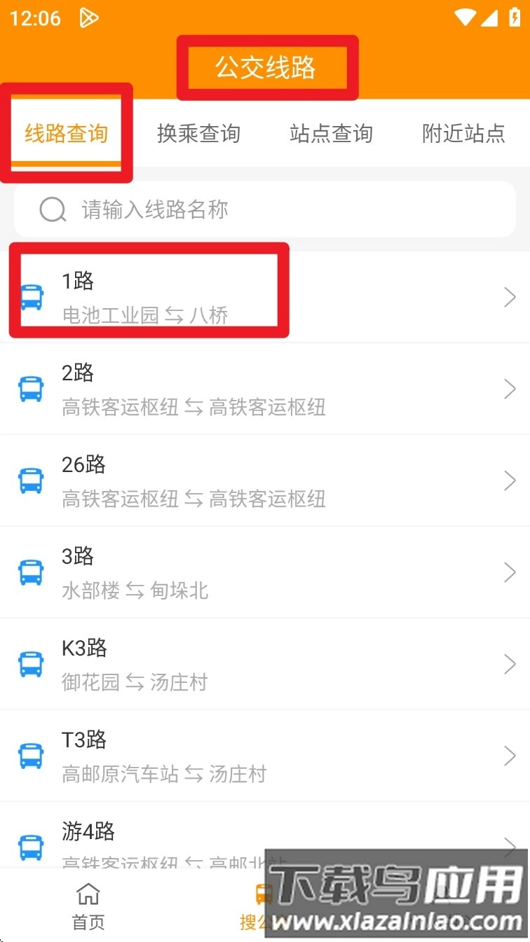 2. 切换到“搜公交”标签页,选择“线路查询”功能,然后点击具体的线路以查看详细信息;
