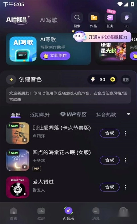 AI写歌助手正式上线啦!只需输入你心仪的歌词类型与演唱风格,就能打造出专属你的独特歌曲,让你瞬间化身优秀的唱作人!