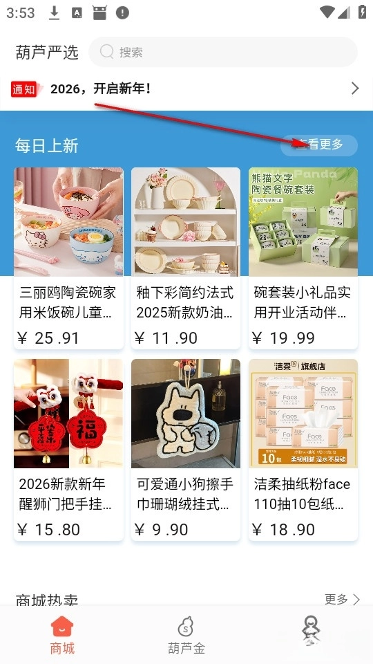 点击每日上新右边的查看更多。