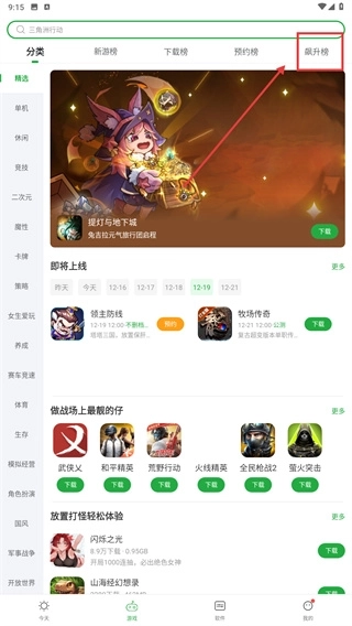 2、在游戏页面的顶部位置,点击【飙升榜】这个标签,就能切换到飙升榜榜单页面,进而查看近期热度处于上升状态的游戏。