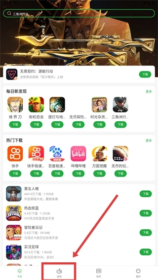 进入应用后,点击底部的【游戏】选项,即可进入游戏分类页面,在该页面中能够浏览各类游戏资源。