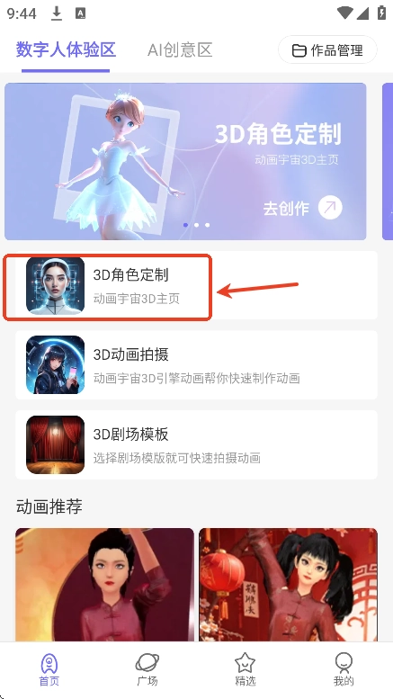 之后,用户只需点击“3D角色定制”选项,就能开始为自己的动画作品打造专属的3D角色形象了。
