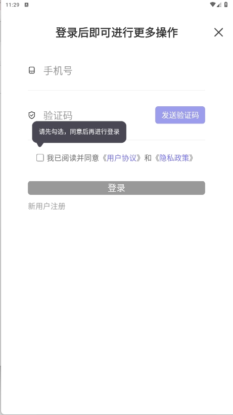 输入手机号码,获取验证码进行登录即可