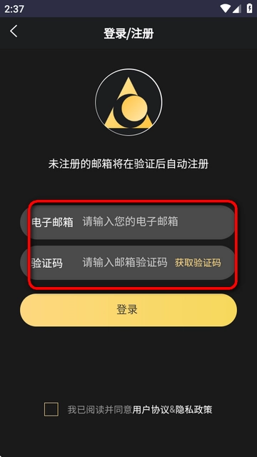 2、输入电子邮箱,获取并填写验证码,即可完成登录/注册操作。